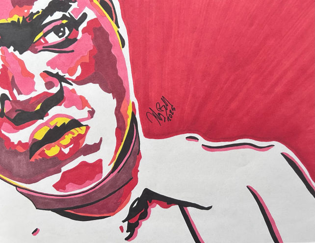 One of my favorite artists of all time, and I’ve drawn him many times. Going for a different take with the neon colors, and the boxed character.