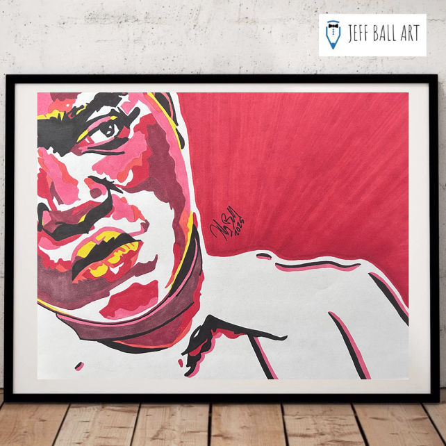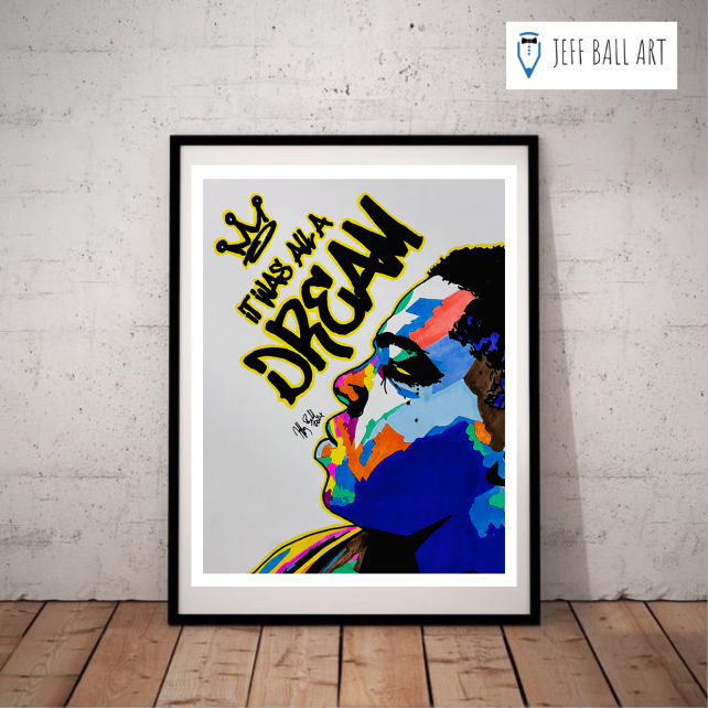 Biggie Smalls is one of my favorite rappers of all time, and an artist that I've drawn many times. Ths is one of my favorite pieces, with the expression, the iconic crown, and the bold background. This is another piece that gained early popularity. I liked this one so much, it's even hanging in my home gym. I even did a small run of t-shirts with this one.